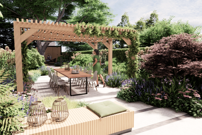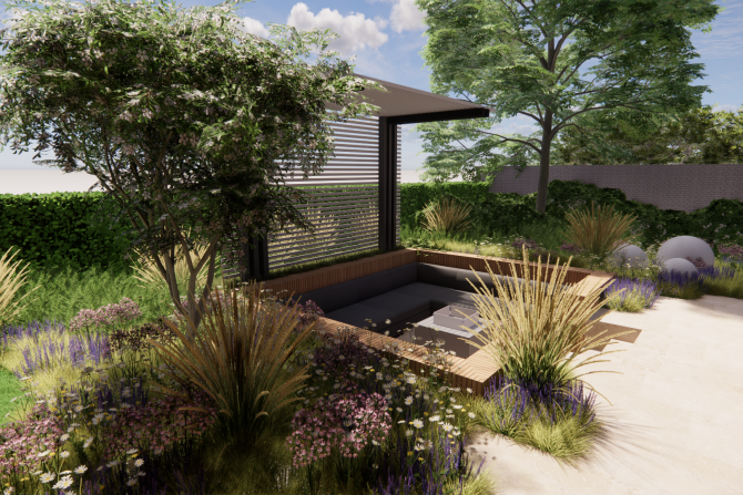 3D tuinontwerp met zitplaats