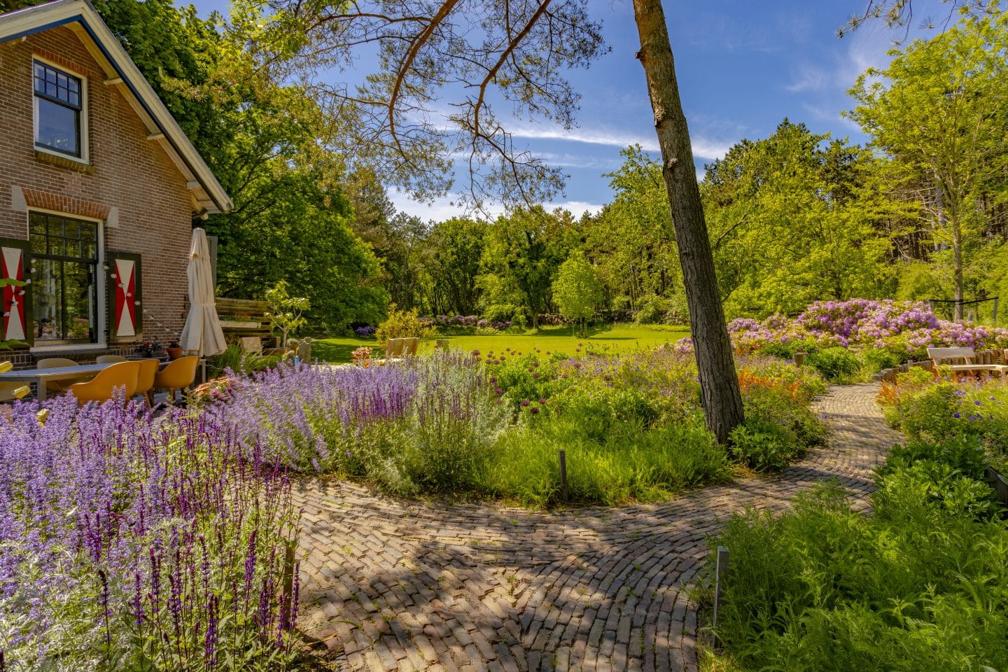 Om te komen tot een goed beplantingsplan hebben we intensief samengewerkt met Natuurmonumenten, de landgoedbeheerder en de gemeente. Hierbij is onze interne kennis van beplanting optimaal benut. In de tuin is een mooi lijnenspel ontstaan en door de natuurlijke uitstraling sluit deze perfect aan op het omliggende landschap. Tegelijkertijd is de tuin wel echt een tuin geworden en bewust geen onderdeel van het duingebied. Het onderscheid zich van alles er omheen.