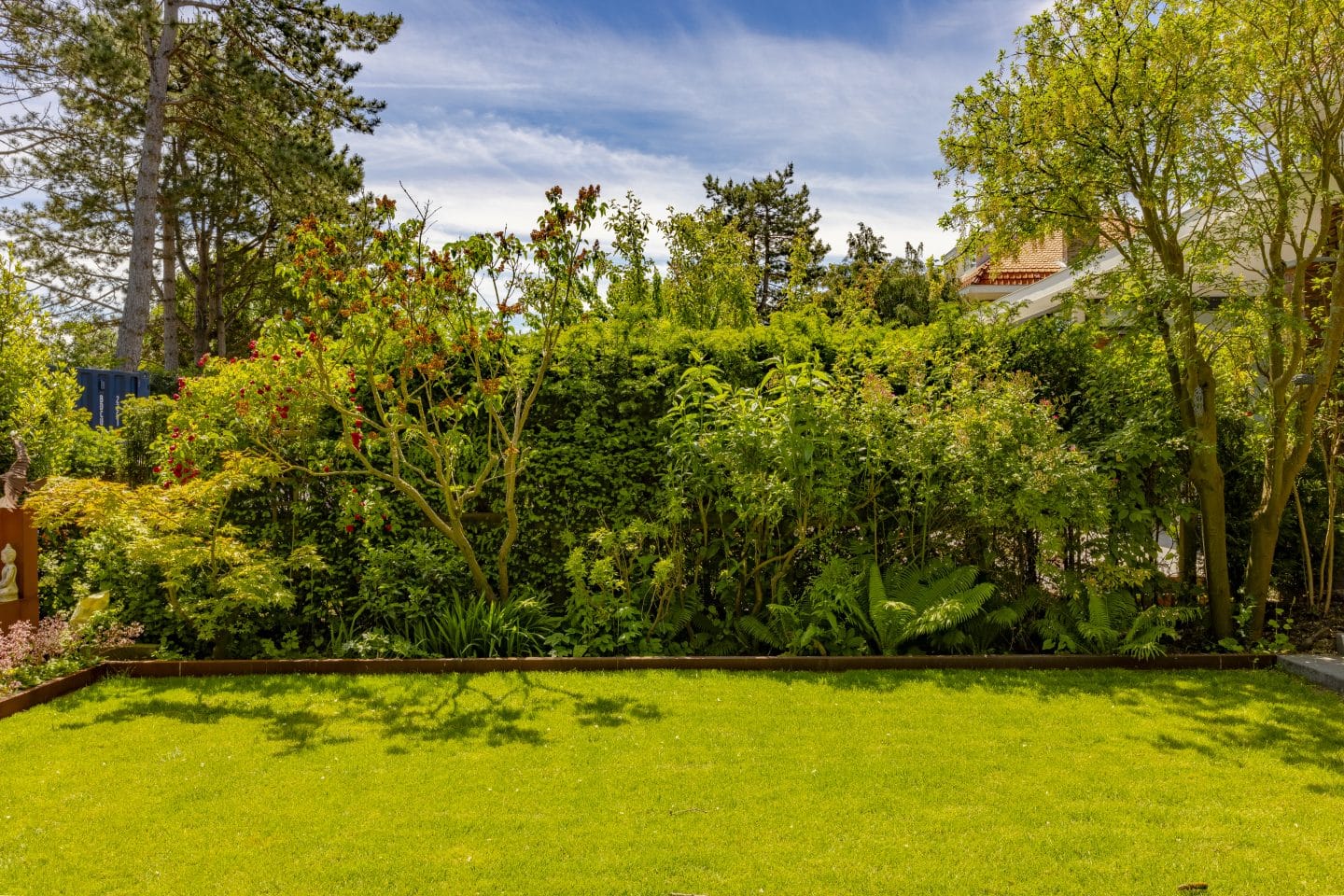 Met name op de erfgrens lieten we veel beplanting staan, zodat het daar mooi dicht bleef. Ook de rest van de beplanting is bijna volledig hergebruikt, waardoor de tuin direct een volwassen uiterlijk heeft gekregen.