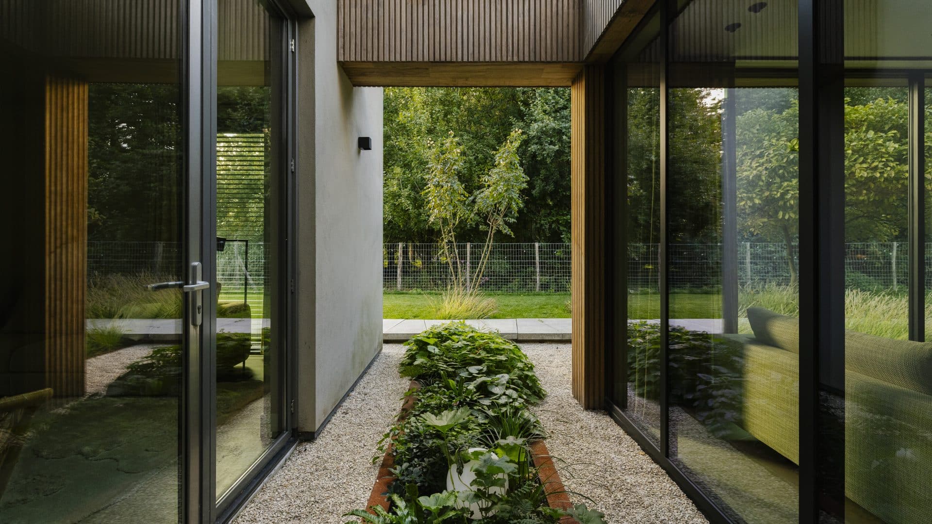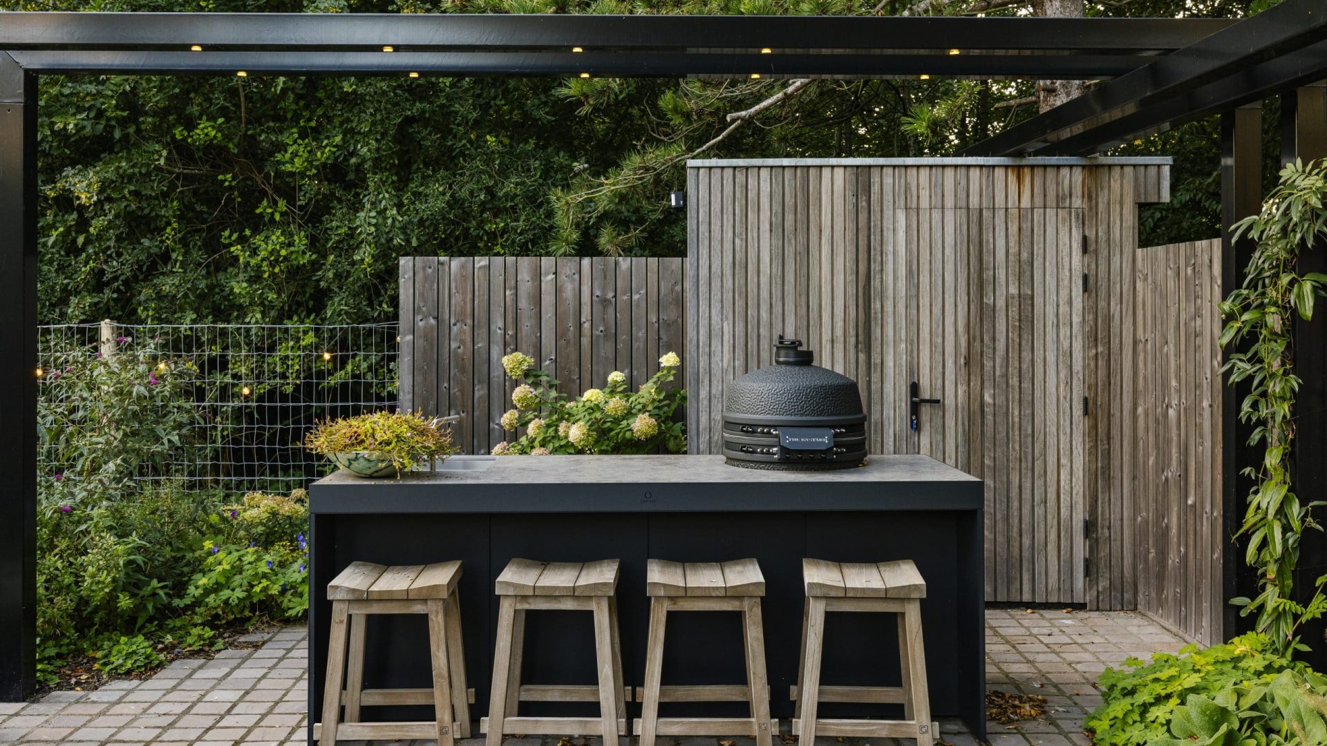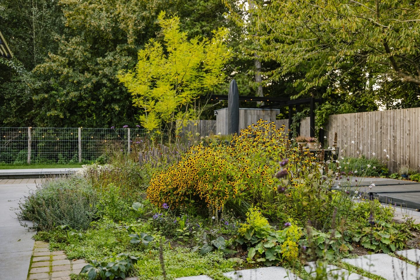 Door een slimme combinatie van strakke lijnen en organische vormen is deze tuin een perfecte mix van architectuur en natuur geworden.